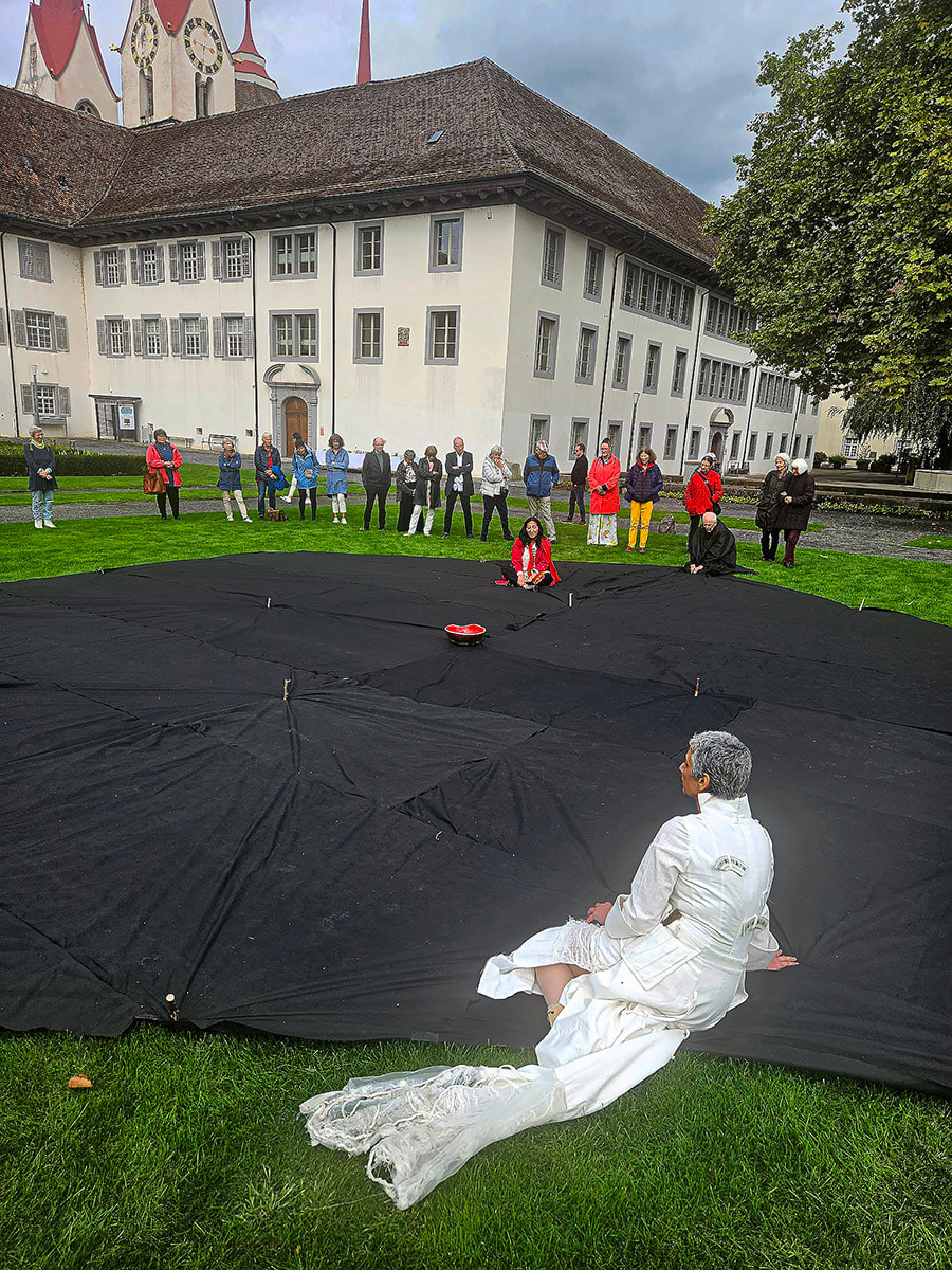 Performative Arbeit by Saadat Türköz, Neda Razivipour, Dieter Holliger auf dem Konvent Rasen des Koster Muri am Sisters of Venus Day Video by Viviane Barbieri |